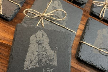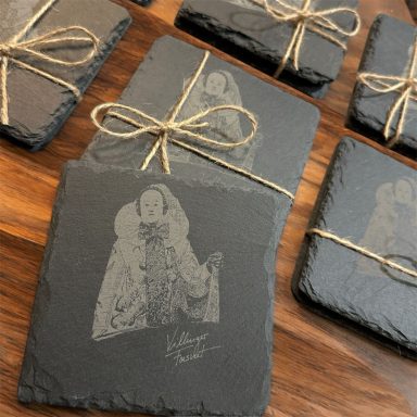 Hier zeigen wir euch, wie viel Arbeit in so einem Projekt steckt – von der Premium-Vektorgrafik bis zum fertig gelaserten Produkt auf dem Schiefer-Untersetzer.